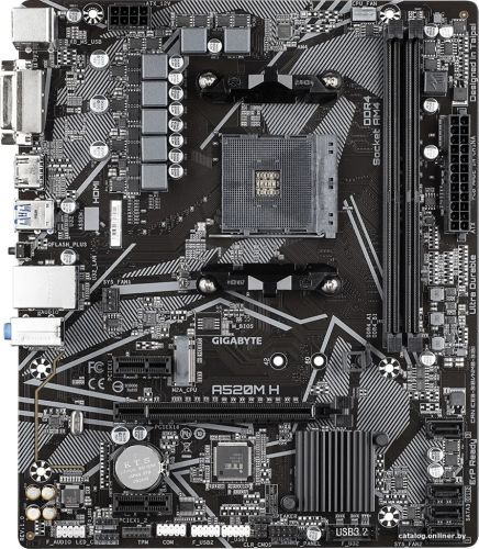 mATX, сокет AMD AM4, чипсет AMD A520, память 2xDDR4, слоты: 1xPCIe x16 3.0, 1xM.2